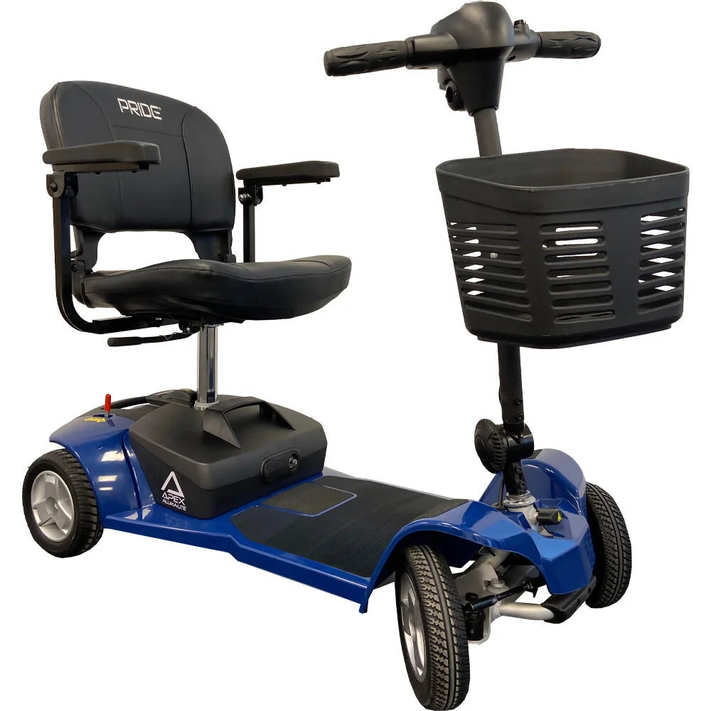 The lightest aluminum travel scooter on the market! The lightest aluminum travel scooter on the market! Experience the convenience of a lightweight, compact travel scooter. Easy to put into the boot, with its heaviest piece weighing only 11 kg. The Apex Alumalite, with its aluminum frame, weighs only 28.8kg in total making it our lightest four-wheeled scooter yet