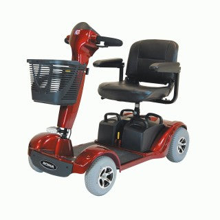 Comfort & Refinement. Introducing the Roma Medical Sorrento, 4 mph mid-range mobility scooter. This a great example of a comfortable, mid range pavement scooter with one or two added refinements. The Sorrento enables you to travel up to 20 miles between charges, and that is whilst carrying someone up to 21 stones in weight. The batteries also have dual charging sockets for charging on or off the scooter. It has a very comfortable padded seat, that is height adjustable as well. The arm rests can be raised up make getting on and off easier, and can also be positioned at differing widths to make sure you achieve the seating position that suits you. There is a removable basket on the front of the tiller with a handle if you need to take it into a shop, and a powerful LED light for your safety.