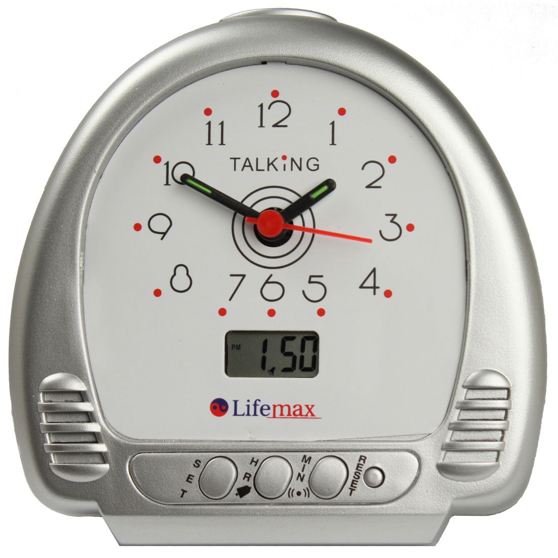Just press the large top button and this quartz analogue clock will speak the time for those with sight limitations. For the hard of hearing the time is clearly shown on both its analogue face and nifty digital display. Add a choice of three alarm sounds and an optional hourly time announcement for perfect time keeping.
